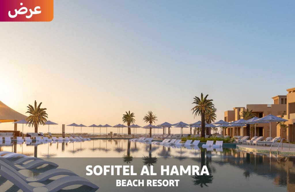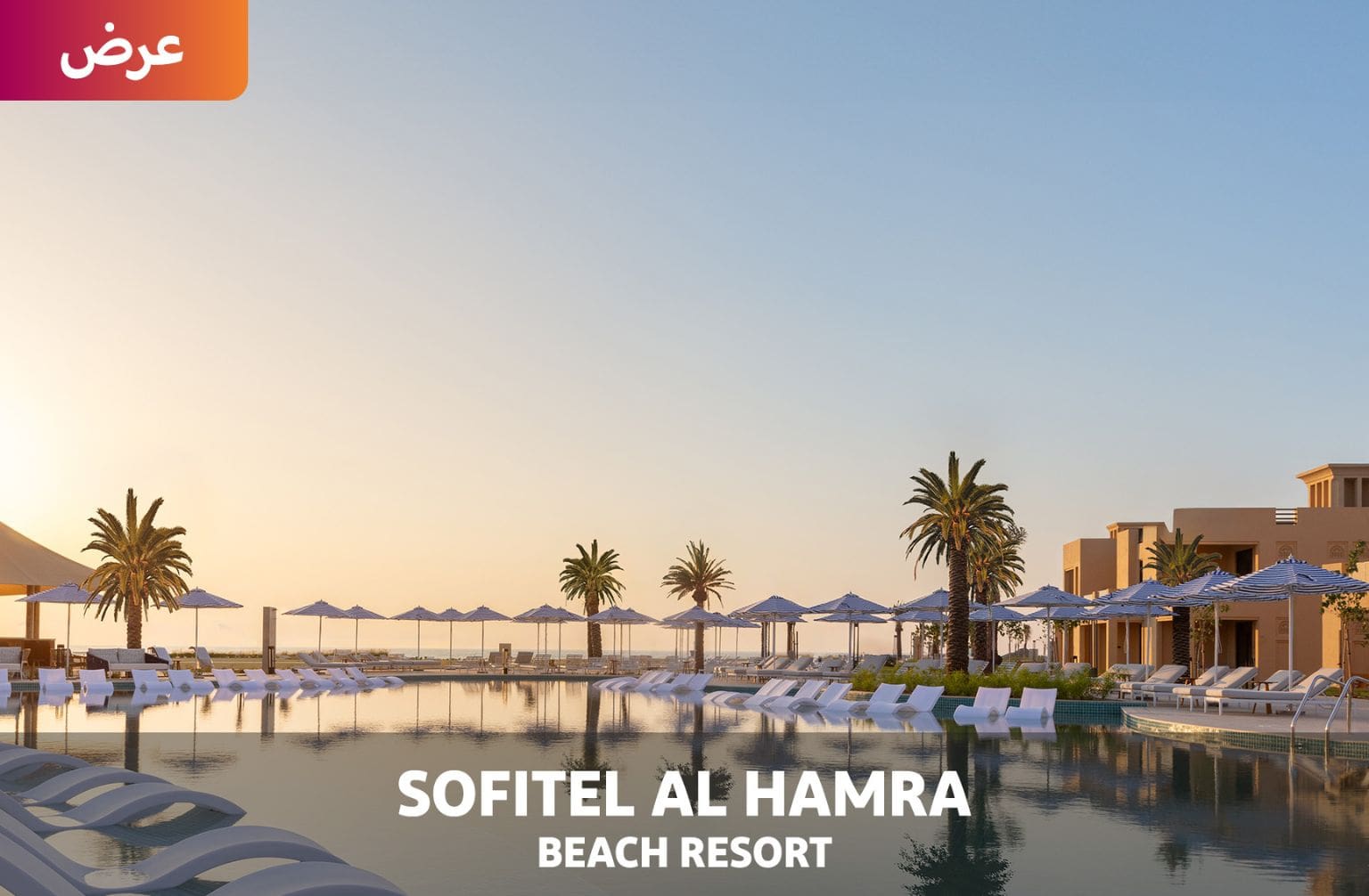 يمكن للضيوف حجز إقامة لا تقل عن ليلتين في منتجع سوفيتيل الحمرا بيتش رأس الخيمة وفق أفضل سعر متاح، والاستمتاع بليلة إضافية مجانًا مع عرض الإقامة 3 ليالي بسعر ليلتين. يقع المنتجع على مياه فيروزية خلابة، مما يجعله الوجهة المثالية لقضاء عطلة مميزة. العرض ساري حتى 25 مايو 2026.