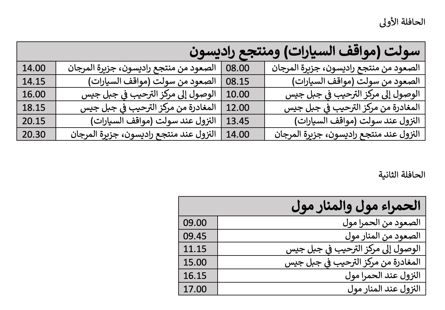 الحافلات تعمل أيام الأربعاء والجمعة والأحد: