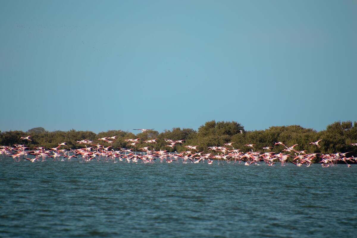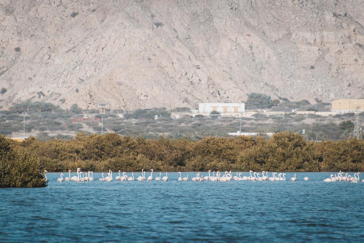 These tidal forests create rich feeding grounds for the western reef heron, the greater spotted eagle, and the Kalba collared kingfisher. It is also one of the best places for flamingo spotting in the UAE.