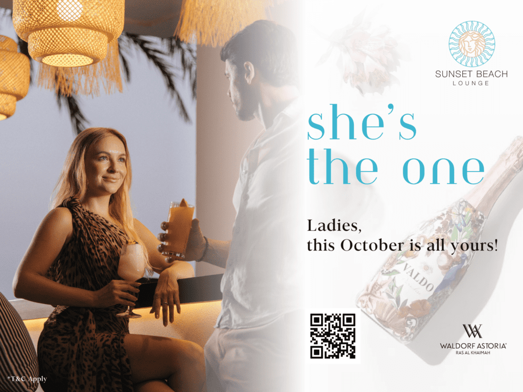 This October, the luxurious Sunset Beach Lounge at Waldorf Astoria Ras Al Khaimah is rolling out an exclusive offer that’s all about you. With their brand-new “She’s the One” promotion, weekends are set to become the ultimate escape for ladies looking to bask in the sun, sip on signature drinks, and enjoy vibrant beachfront entertainment.