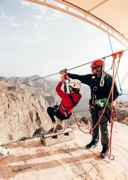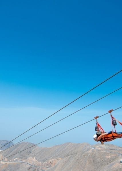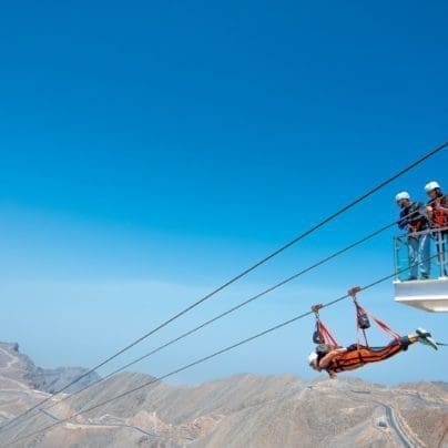 Jais Flight est la plus longue tyrolienne du monde (2,83 km). Traversez des pics montagneux…