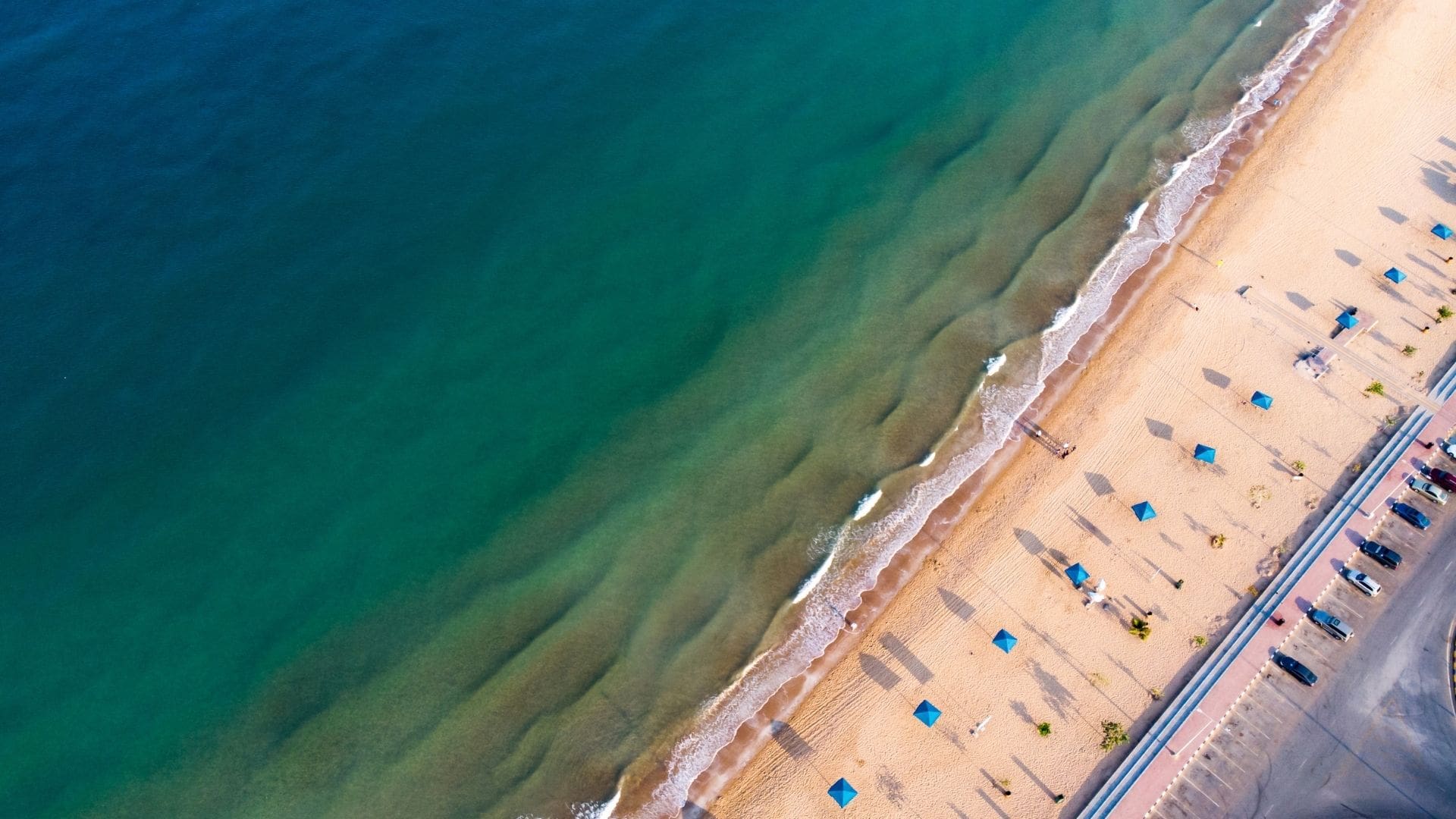 La spiaggia si estende sulla costa occidentale degli Emirati Arabi Uniti. È particolarmente affascinante al tramonto quando il sole scompare dietro il Golfo, lasciando colori mozzafiato sulla sua scia. La spiaggia è perfetta per le famiglie: le acque basse e la mancanza di correnti favoriscono i giochi sulla spiaggia, le lezioni di nuoto o semplicemente il relax. Il campo da beach volley illuminato consente di cimentarsi in divertenti match con amici e familiari.