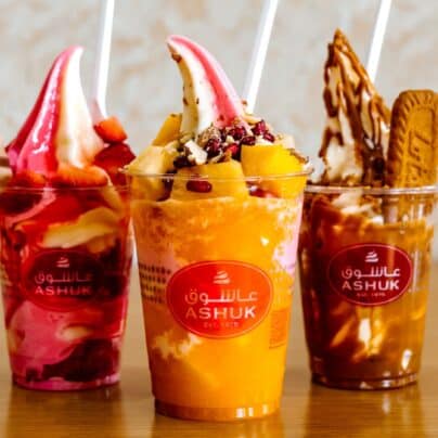 Dopo diverse migliaia, se non milioni, di gelati bianchi e rosa, è orgogliosamente proprietario della migliore gelateria della città. Prova l’enorme sundae di mango, melagrana e mela decorato con granella di pistacchi e sciroppo di fragola. Questo gelato esclusivo è un omaggio ai suoi antenati: suo padre aveva un carretto di kulfi e suo nonno era fruttivendolo in Pakistan. Ogni giorno, orde di clienti fanno visita ad Ashuk. Le persone del posto suonano il clacson e vengono serviti in un “drive-thru” improvvisato. Entra dentro per dare un’occhiata al menu e goderti il tuo gelato, frappè o frullato nel locale climatizzato.