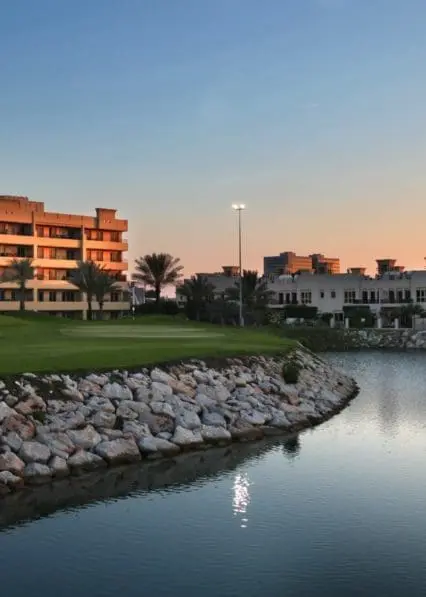 В гольф-клубе Al Hamra с панорамным видом на Персидский залив и суровые горы Хаджар за…