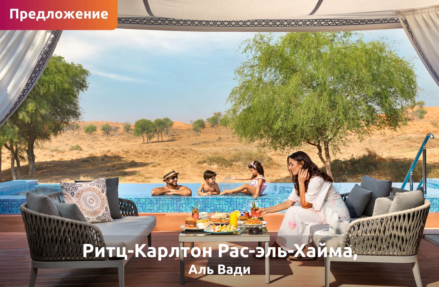 Отдохните в пустыне в отеле The Ritz-Carlton Al Wadi и воспользуйтесь скидкой до 20% на проживание, включая питание, а также семейными предложениями и летними бонусами. Воспользуйтесь дополнительными возможностями: от завтрака до бранча, и получите доступ к дневным абонементам на посещение курорта.