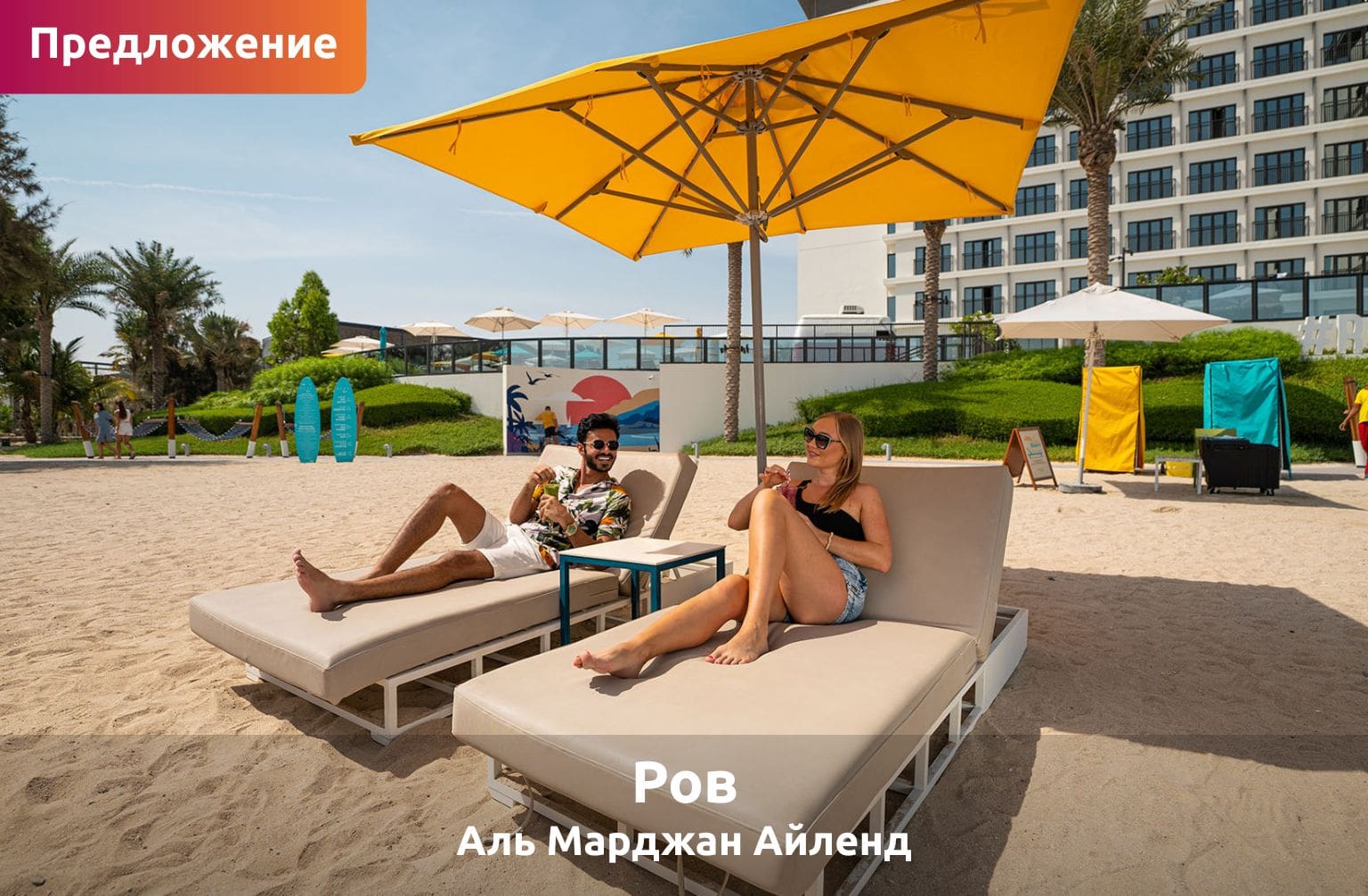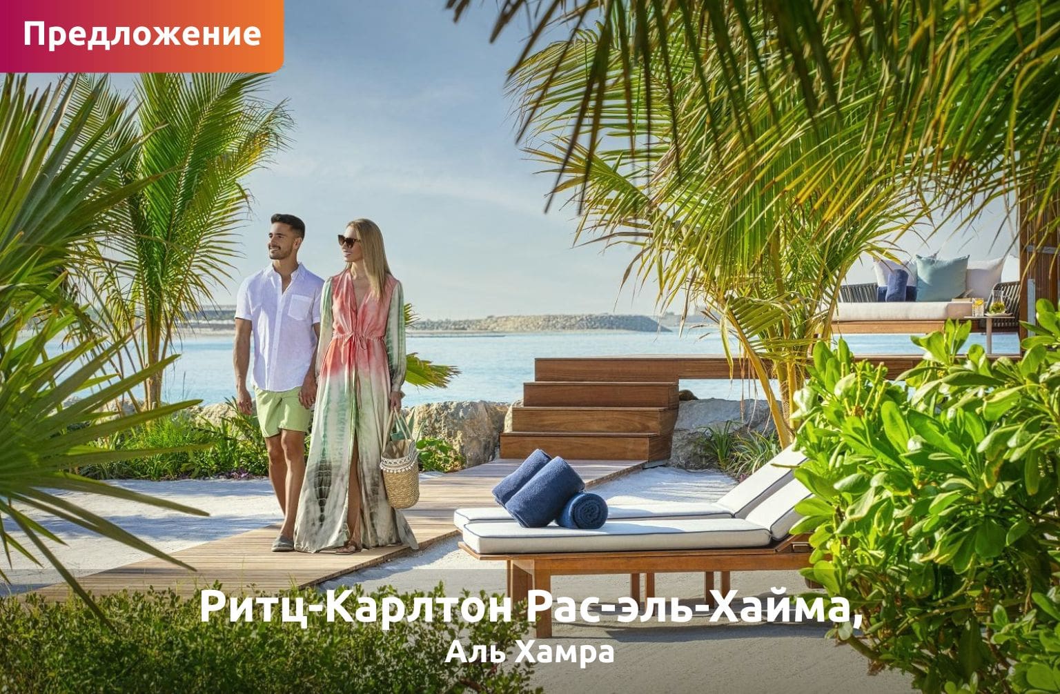 Наслаждайтесь отдыхом на берегу моря в отеле The Ritz-Carlton Al Hamra Beach со скидкой 20% на проживание, включая завтрак и ужин. Гости также могут воспользоваться специальными предложениями в ресторанах, скидками на спа-процедуры и эксклюзивными вариантами однодневных поездок для расслабляющего отдыха на берегу моря.