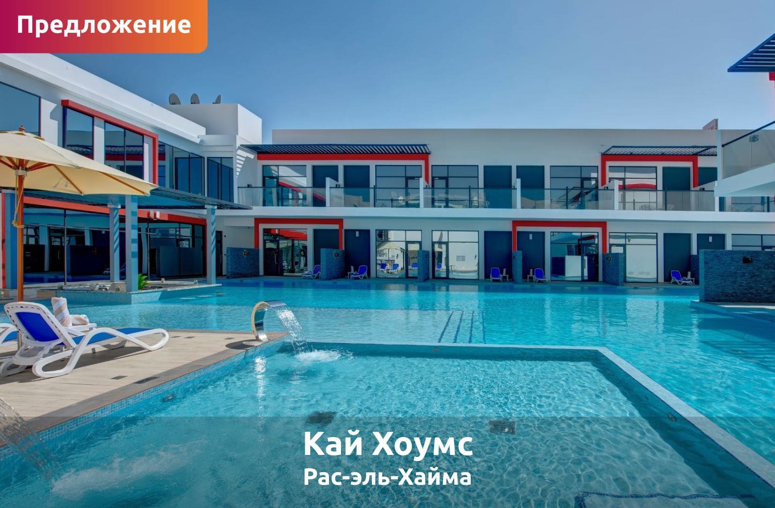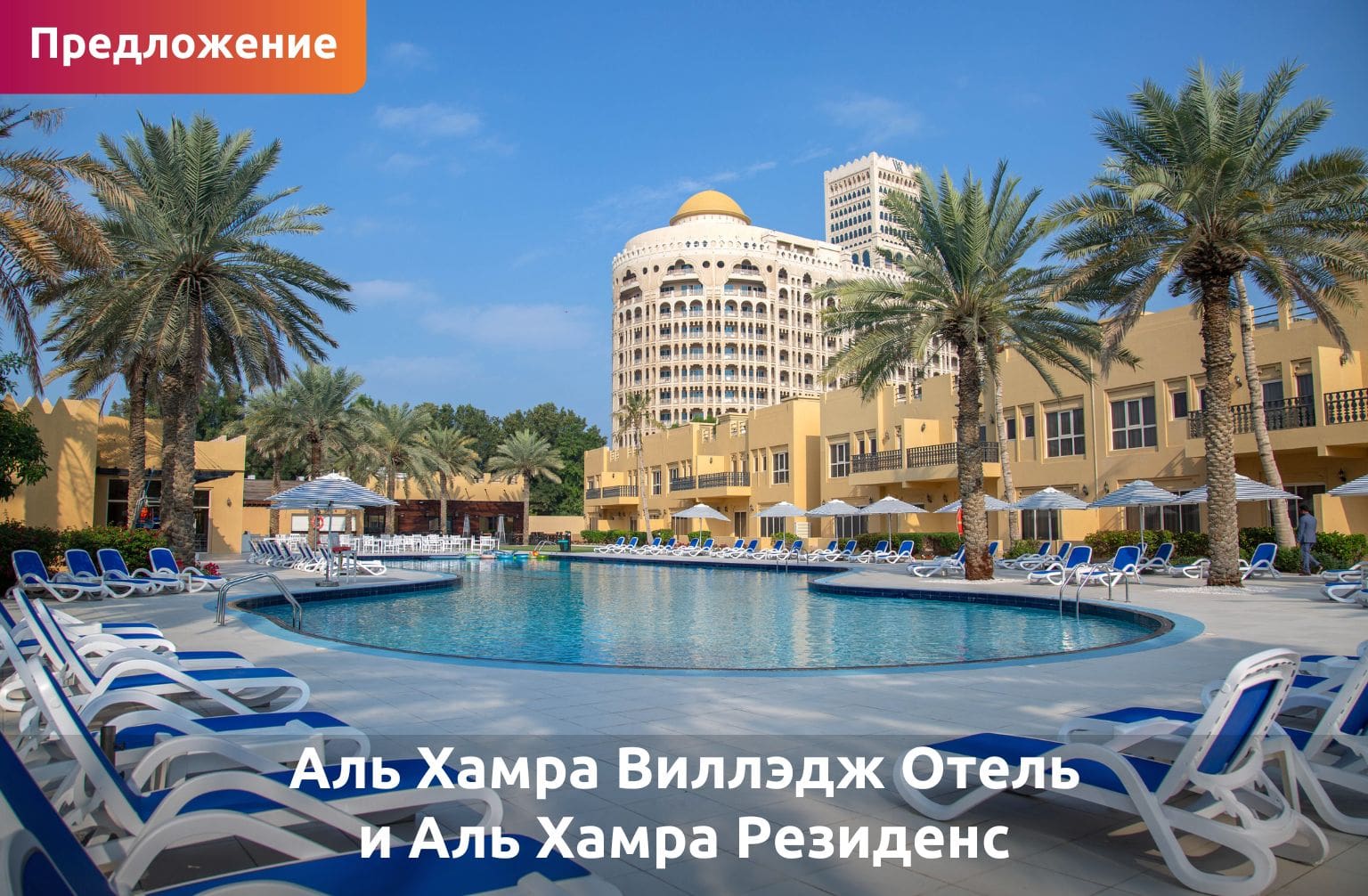 Жители ОАЭ могут наслаждаться отдыхом в отелях Al Hamra Village Hotel и Al Hamra Residences со скидкой 30% при бронировании напрямую. В обоих отелях разрешено проживание с домашними животными, есть открытые бассейны, выход на пляж и детский клуб для веселого и расслабляющего отдыха.