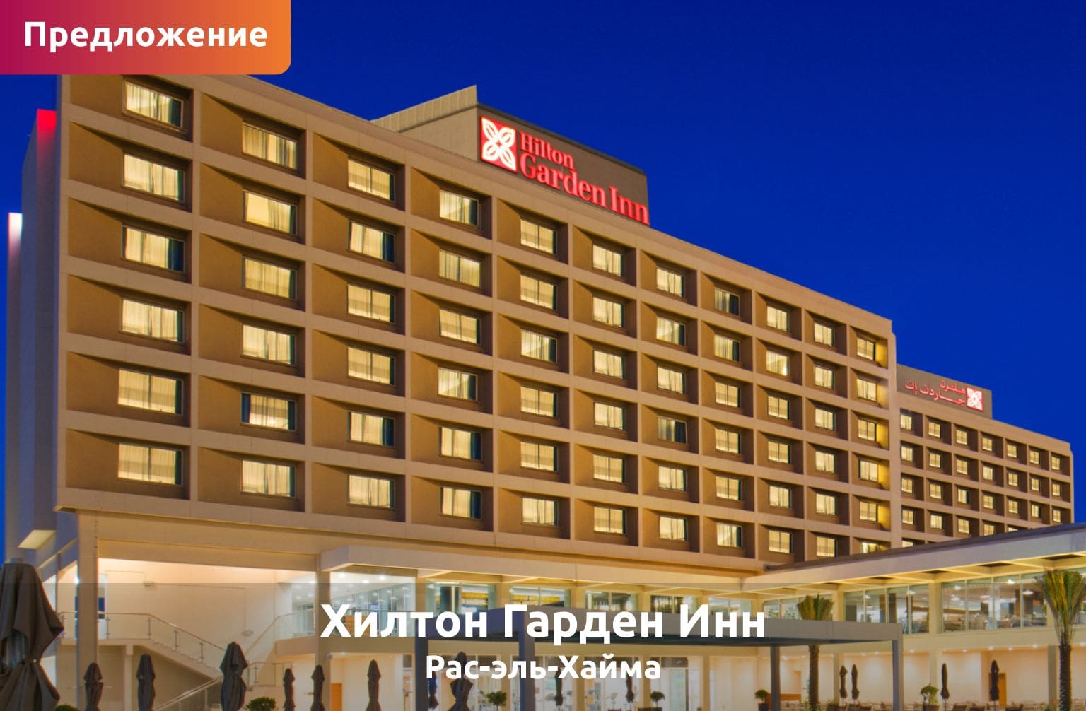 Наслаждайтесь отдыхом в отеле Hilton Garden Inn Ras Al Khaimah с возможностью круглосуточного проживания, которая позволяет заселиться в удобное для вас время и в полной мере насладиться днем отдыха. Для дополнительного комфорта и удобства гости также могут воспользоваться возможностью раннего заселения и позднего выезда до 21:00. Идеальное место для короткого отдыха, будь то приятное времяпровождения у бассейна или неспешная прогулка по городу в удобном для вас темпе.