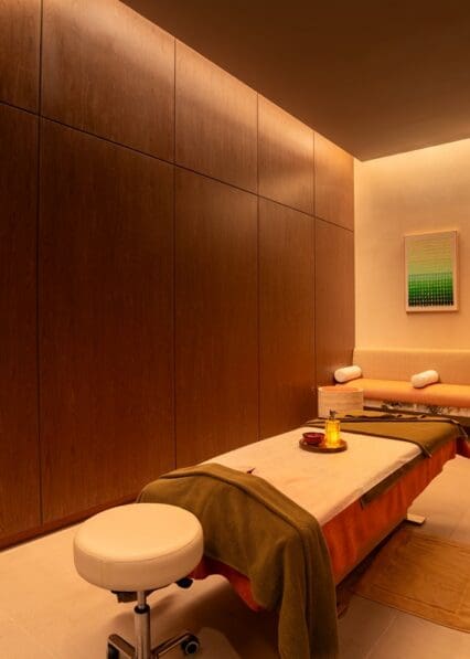 The spa combines modern wellness facilities including five treatment rooms with an extensive menu of treatments. Guests can unwind in the steam room, sauna, indoor jacuzzi and relaxation areas, or refresh with experience showers. Therapies range from tailored massages and exfoliating scrubs to nourishing body wraps, facials and traditional hammam rituals. Each treatment is delivered with care and precision, focusing on easing tension and restoring energy. Whether for a brief reset or a longer wellness ritual, Anjana Spa provides a peaceful, considered setting where body and mind feel renewed.